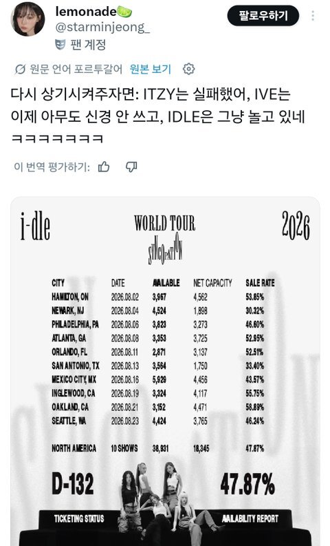 “Hatırlatmak gerekirse: ITZY başarısız oldu, artık kimse IVE’ı umursamıyor ve (G)I-DLE sadece vakit öldürüyor ㅋㅋㅋㅋㅋㅋㅋ”