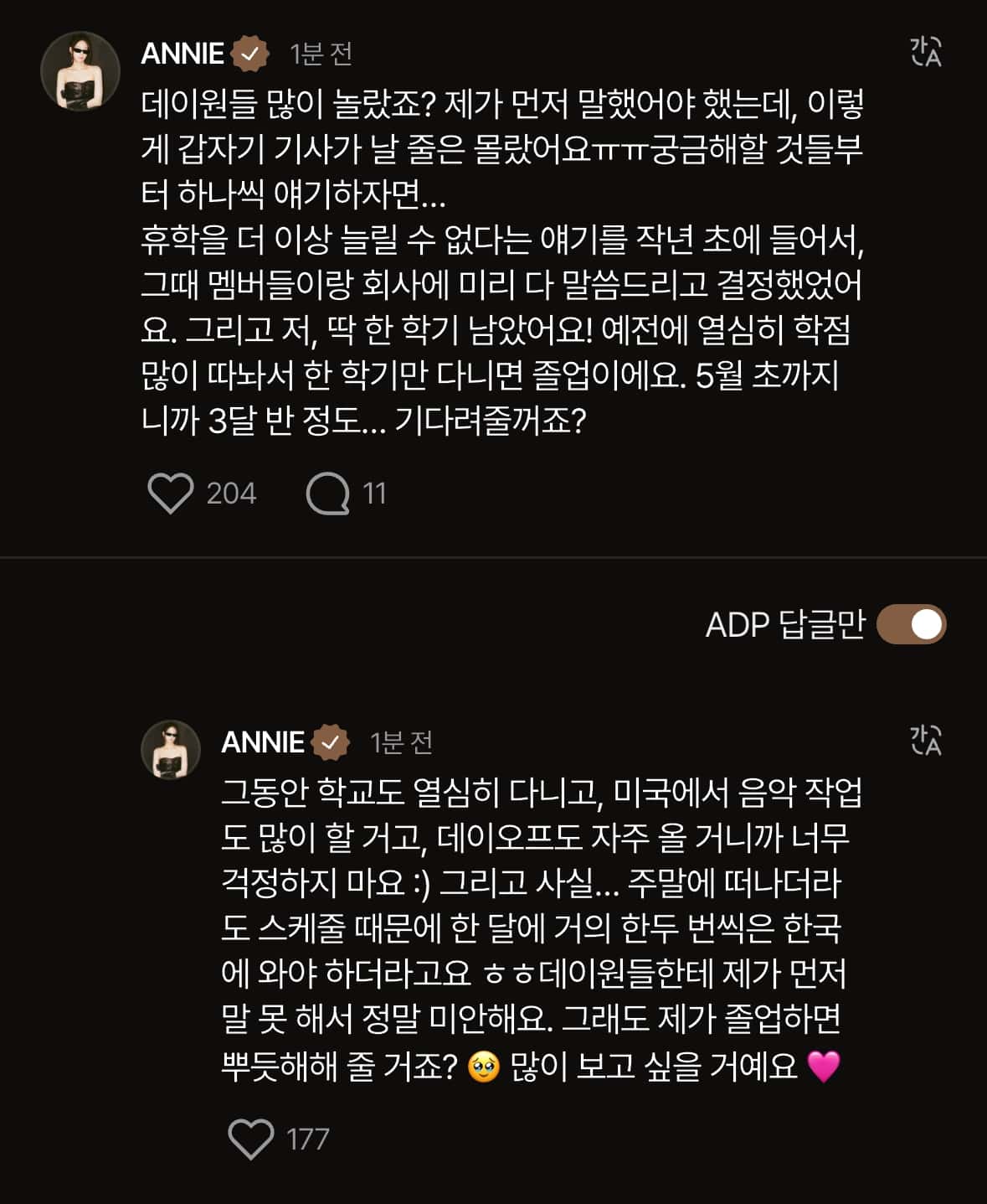 Allday Project Annie, üniversiteye geri döneceği için Mayıs’a kadar idol faaliyetlerine ara verecek