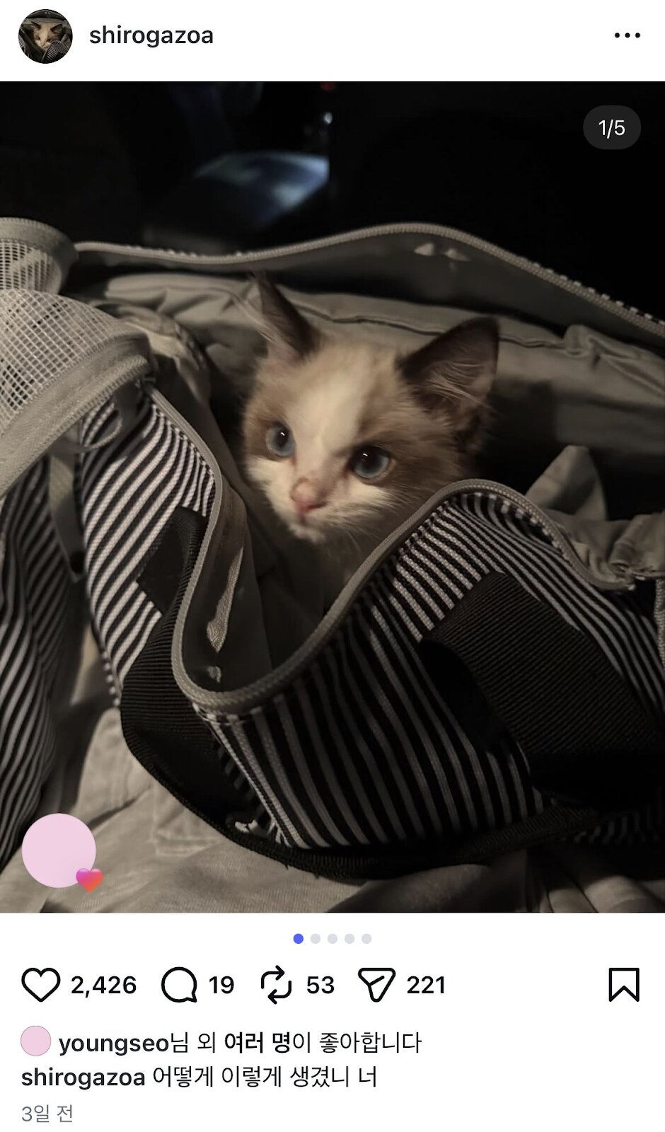 Son üç gündür safkan kedilerin çok sayıda fotoğraf ve videosunu paylaşıyor (videolarda Youngseo’nun sesi duyulabiliyor)