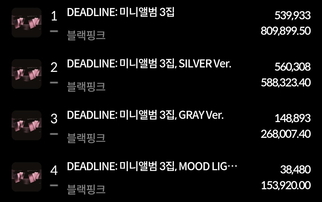 BLACKPINK [DEADLINE] ALBÜMÜ ILK HAFTA SATIŞLARI (HANTEO)