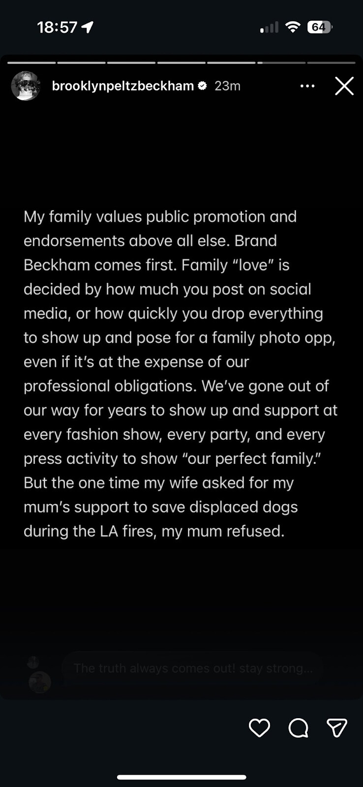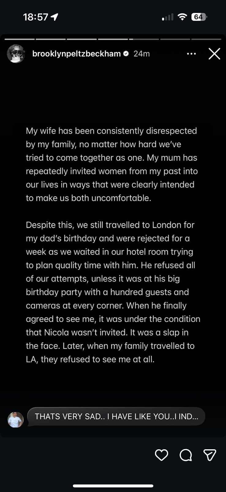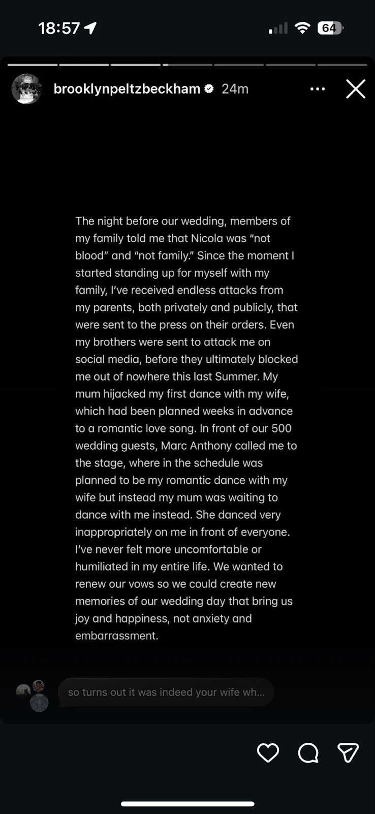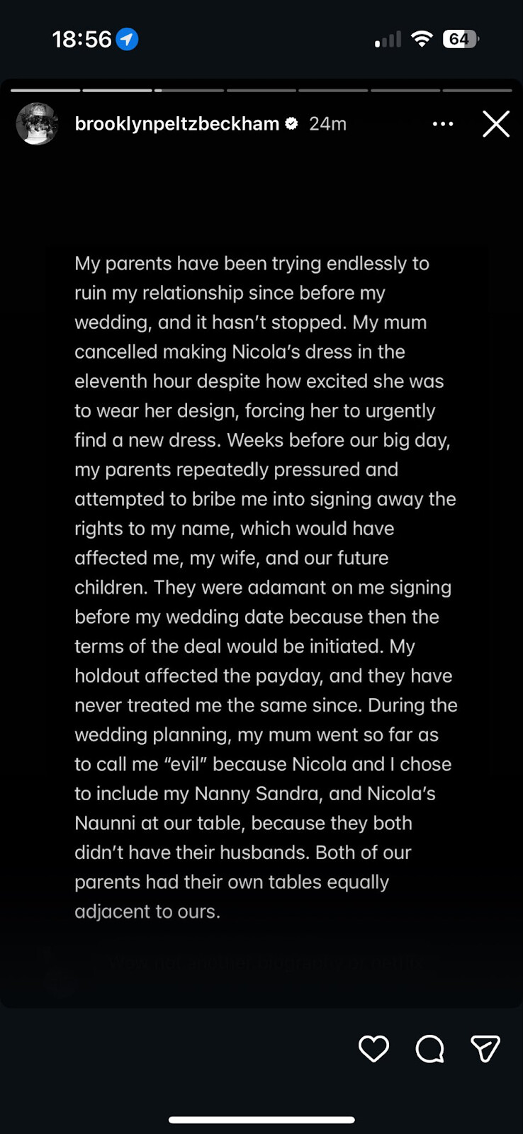 Brooklyn Beckham, Instagram paylaşımda ailesinden uzaklaştığını duyurdu ve onları ifşa ett