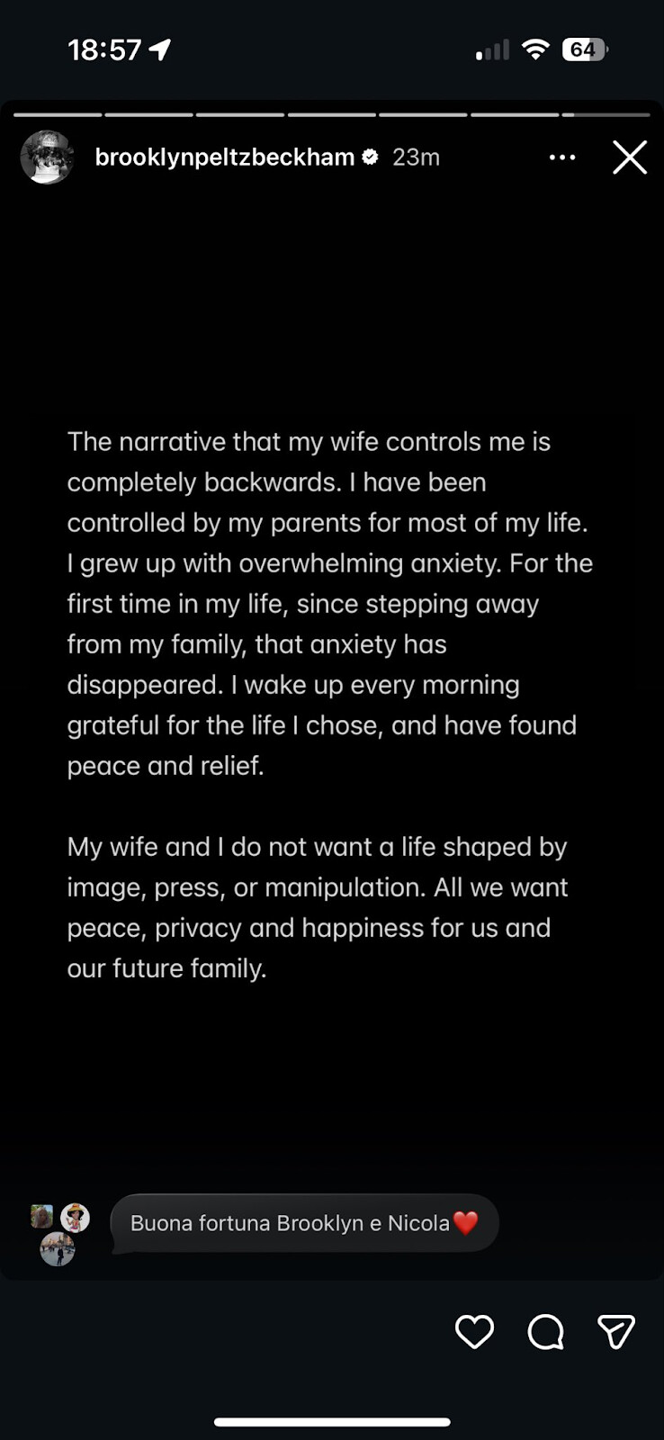 Eşimle birlikte, görüntüye, basına ya da manipülasyona göre şekillenen bir hayat istemiyoruz. Tek istediğimiz; bizim ve gelecekteki ailemiz için huzur, mahremiyet ve mutluluk.” CR: yenicaggazetesi