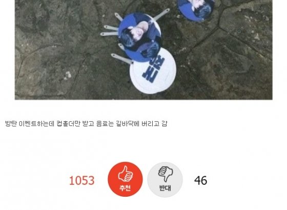 12. [+32, -0] Bir sanatçının seviyesi yükselince hayranların da seviyesi yükselmiyormuş demek ki ㅋㅋㅋ İçeceğinizi bitirmeyecekseniz en azından doğru dürüst çöpe atın. Etrafta çöp bırakmadan önce kendinize sorun, şarkıcım bunu görse utanır mı sevinir mi diye ㅋㅋㅋ