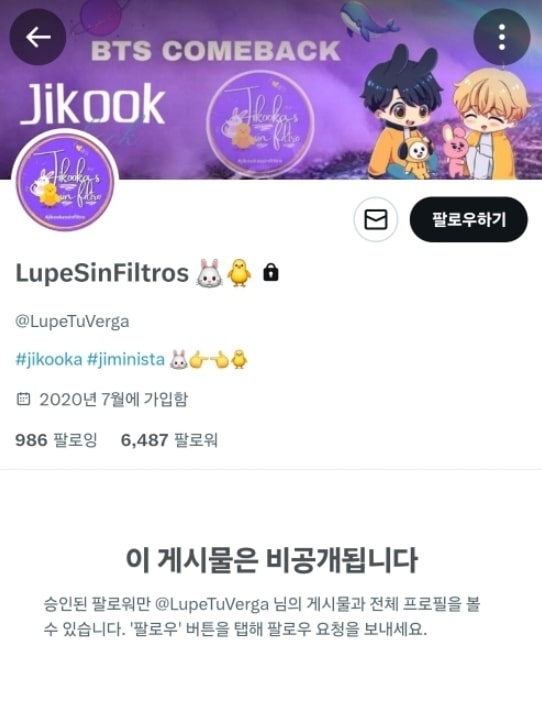 İkili arasındaki ilişkiye odaklanan yukarıdaki hesap (Jimin × Jungkook), bir Jimin hayranı tarafından yönetiliyor.