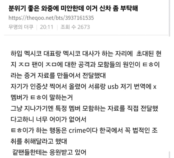 MEKSİKA BÜYÜKELÇİSİNDEN BAŞKA BİR ÜYEYİ SORUŞTURMASINI VE HUKUKİ İŞLEM BAŞLATMASINI İSTEYEN JIMIN’İN HAYRANLARI
