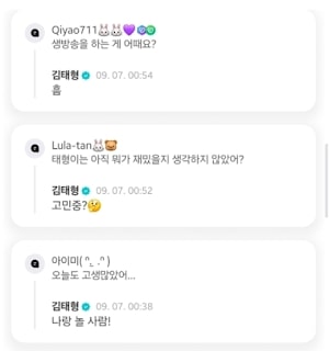 Hayran: Taehyung-ah, selca paylaştığın için seni şimdi daha çok özledim ㅠㅠ