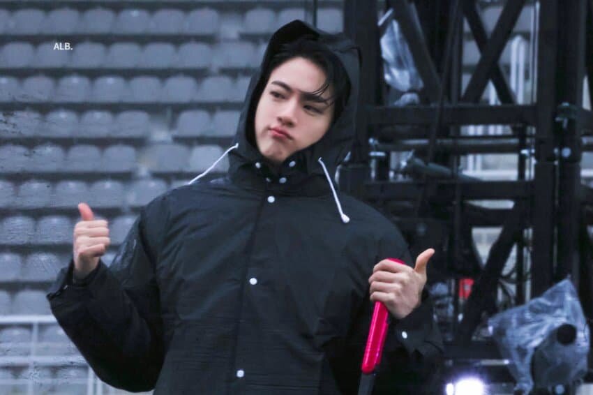 Hayranlarla birlikte şarkı söyleme zamanı. Jin, ön sıradan