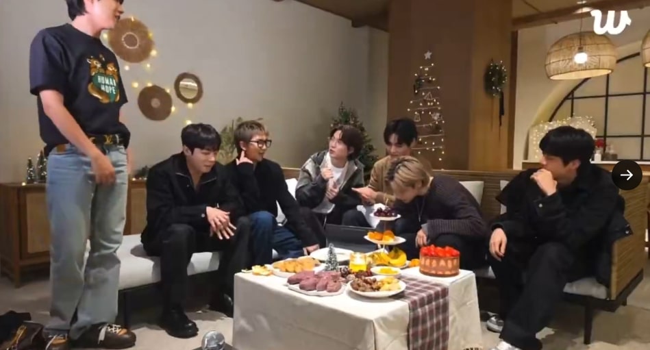 Video 2: Jin zor bir yıl geçirdiğinden bahsedince Jungkook ona “git” diyor, Jimin de “zaten yakında 80 olacaksın” diye ekliyor.