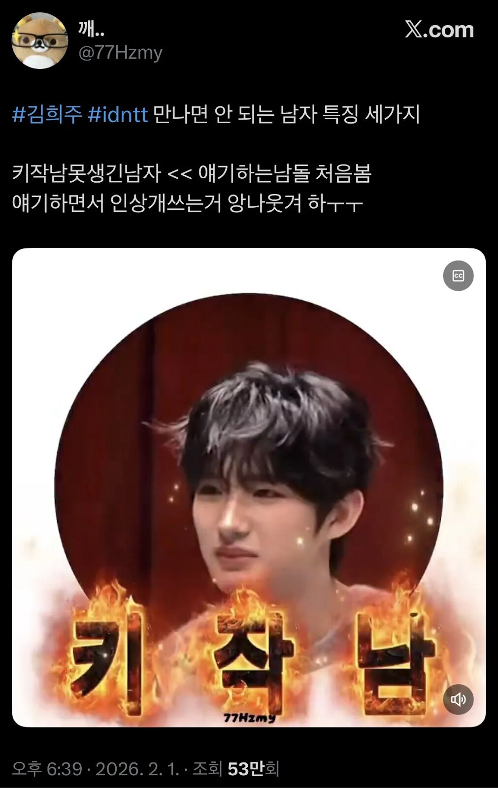 얘기하면서 인상개쓰는거 앙나웃겨 하ㅜㅜ pic.twitter.com/rTb2wkXBn2— 깨.. (@77Hzmy) February 1, 2026