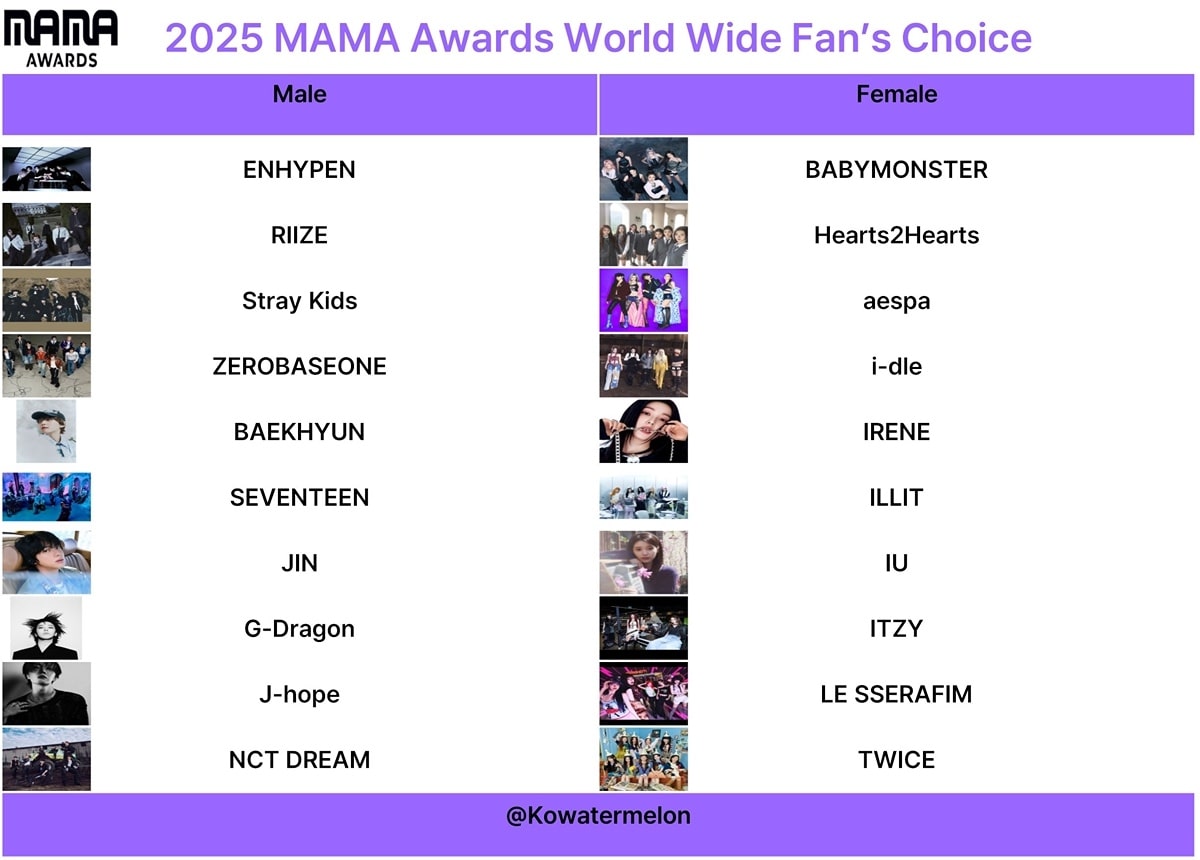 [theqoo] MAMA FAN’S CHOICE ERKEK-KADIN TOP 10 ÖDÜL ALAN GRUPLAR