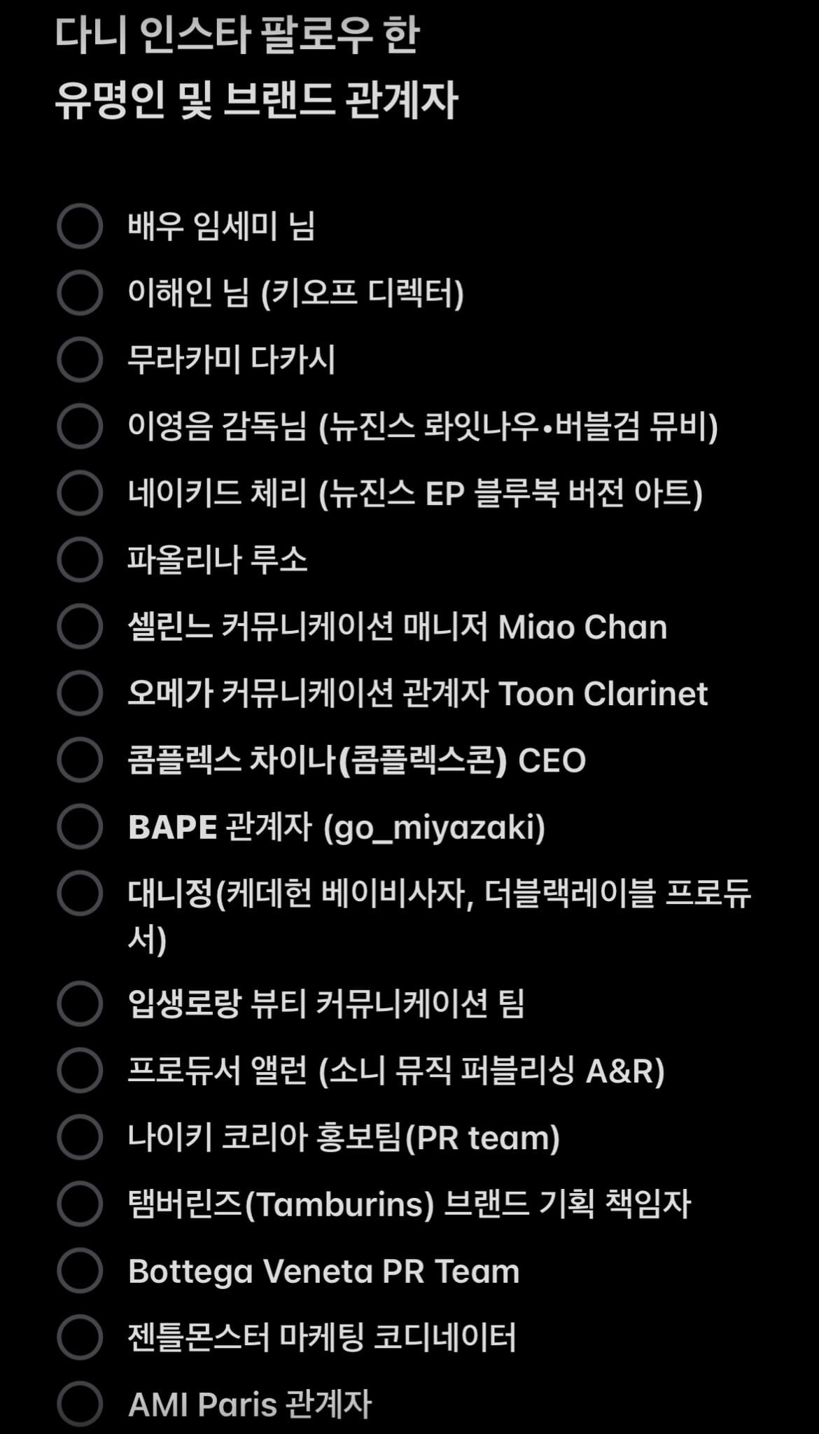 **만 하루동안** 다니엘 인스타 팔로우한 브랜드/유명인들