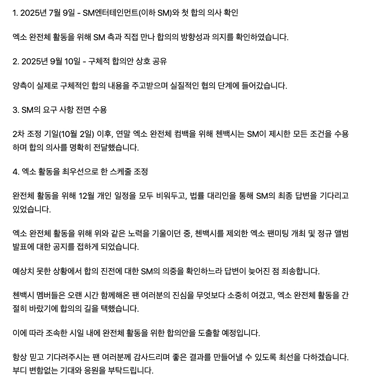 1. 9 Temmuz 2025 – SM Entertainment ile uzlaşma niyetinin teyidi