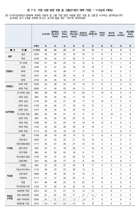 1. sırada eşit puanla: SNSD, BLACKPINK (42%)