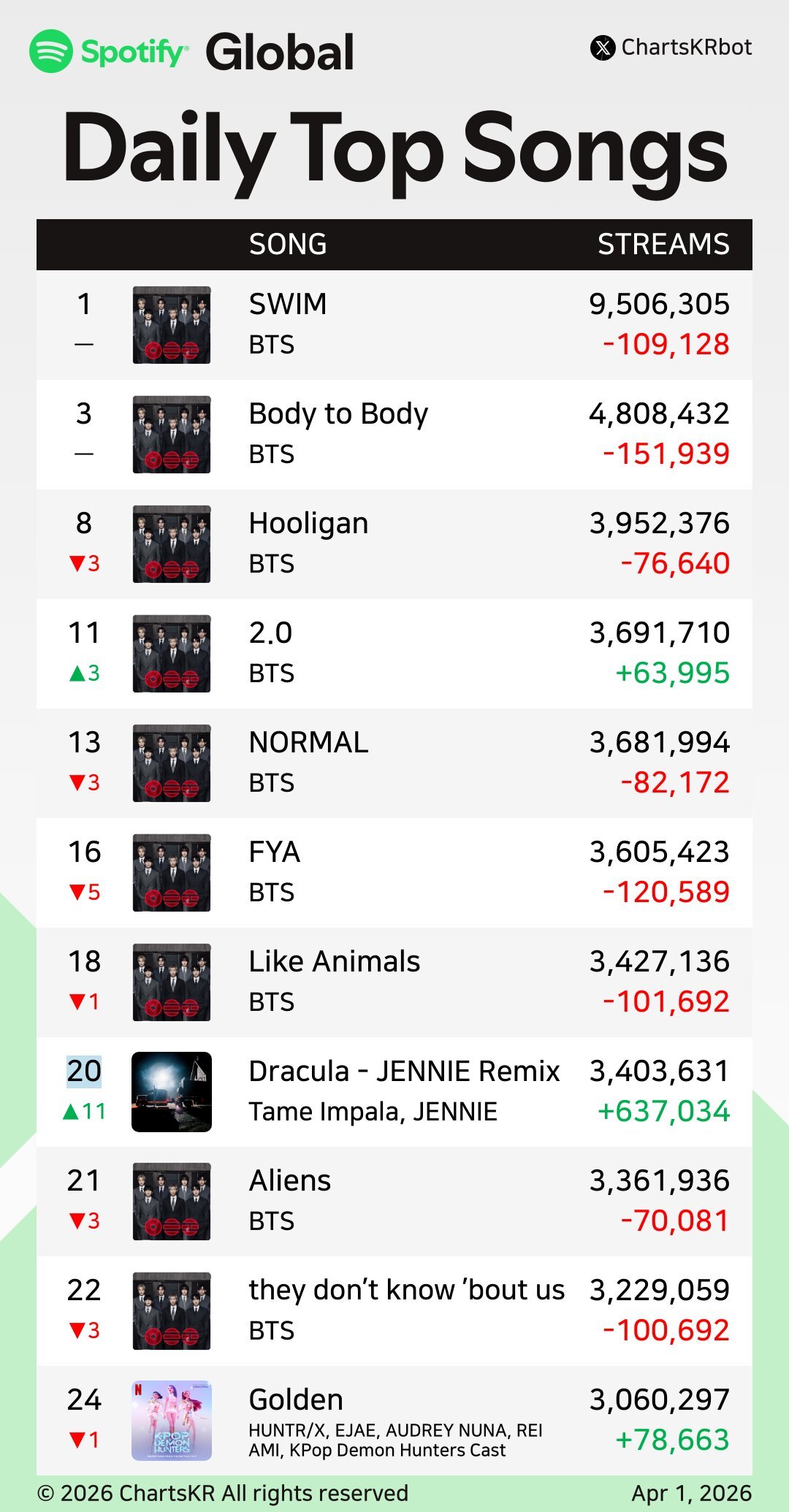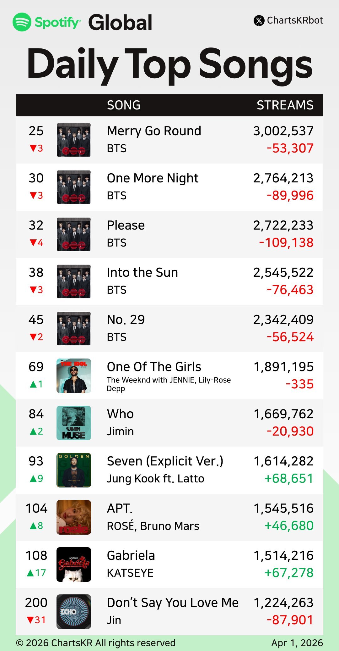 Global Spotify K-pop şarkılarının sıralaması