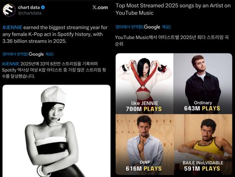 2. [+75, -13] Apar topar katılım ödülü verilen senin idolünㅋㅋㅋㅋㅋㅋㅋ Geçen yıl Jennie, Spotify dinlemelerinde K-Pop solistleri arasında 1. oldu ve YouTube Music performansı da dünya genelinde solo sanatçılar arasında 1. sıradaydı