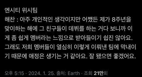 Dürüst olsa da… grupta geçirdiği 8 yıl boyunca, yeni üyelerin çıkış yapmak için ne kadar zorlandığını gördü değil mi? Ayrıca NCT sisteminin sona erdiğini de duyurdular, bu yüzden Haechan’ın şimdi bunu söylemesi çok gereksiz ama oldukça etkileyici
