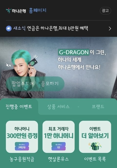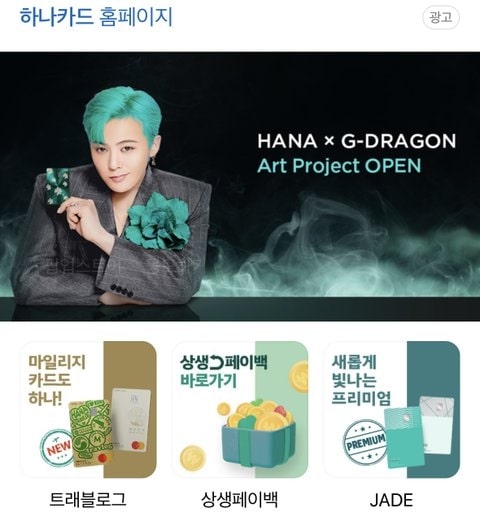4. [+27, -2] Hana Bank’ın ana sayfası tamamen GD ile dolu