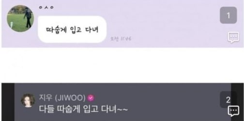 Jiwoo: Dışarı çıkarken sıcak giyin~~