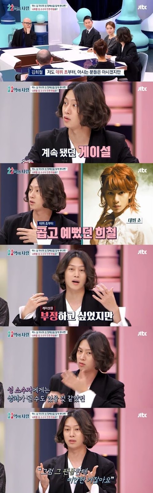 “Eminim çoğunuz biliyordur, çıkış yaptığımdan beri eşcinsel olduğum hakkında dedikodular dönüyor. Diğer erkek ünlülerle skandallarım bile çıktı. Çıkış dönemi uzun saçlarım olduğu ve renkli lens taktığım için bence. En başta dedikoduları yalanlamak istedim ama bu cinsel azınlıklara karşı düşüncesizlik olur diye düşündüm. Kore’deki ya da yurtdışındaki konserlerime gelen erkek hayranlarımdan bazıları eşcinsel olabilir, dedikoduları reddetseydim onlara karşı kendimi kötü hissederdim.”