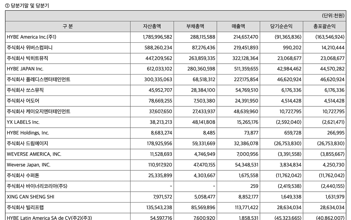HYBE’ın alt şirketlerinin 3. çeyrek performansı