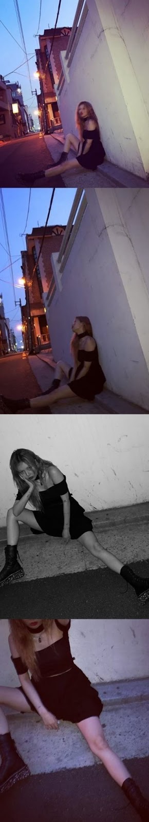 Hyuna yeni Instagram güncellemeleri için sokakta poz verdi