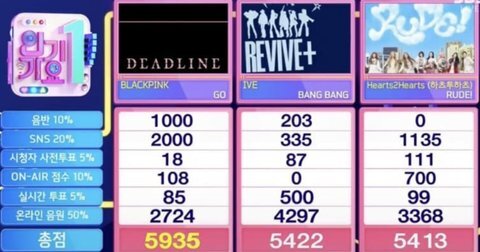 Ama bu haftaki Inkigayo puanları gerçekten tuhaftı. Neden H2H 700 canlı yayın puanı alırken ben 0 puan aldım? BLACKPINK programa katılmamış olmasına rağmen onlara bile 100 puan verdiler.