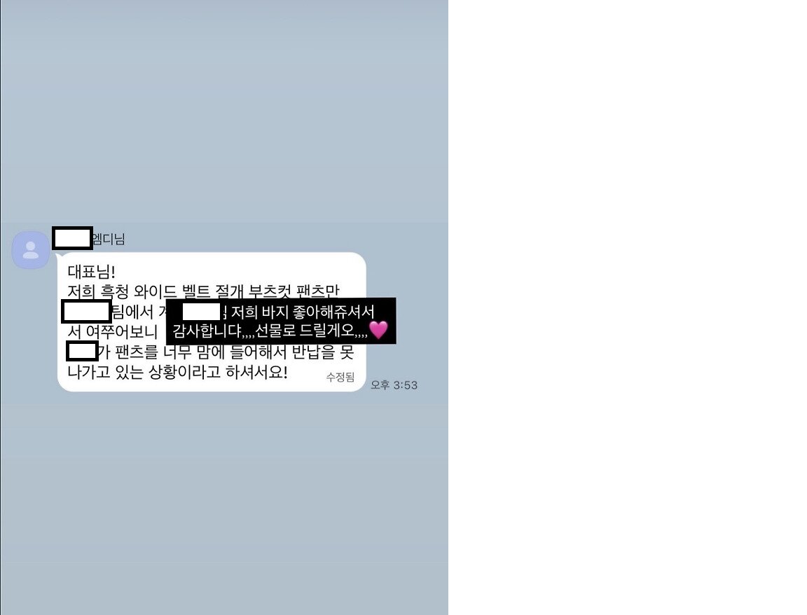 CEO’nun mesajı: XX-nim, pantolonlarımızı sevdiğiniz için teşekkürler… Onları size hediye olarak veriyorum…