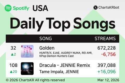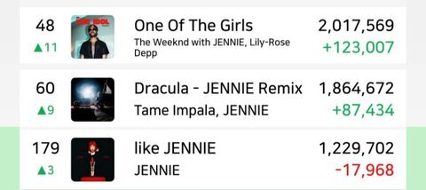 2. [+48, -10] Şu anda üç şarkısı Global Spotify listesinde yer alıyor: bir düet, bir remix ve bir solo şarkısı ㅋㅋㅋㅋ Bu listede 2’den fazla şarkısı olan tek K-pop sanatçısı Jennie