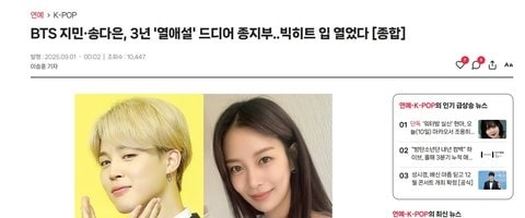 “Jimin, Song Daeun, 3 yıllık ilişki… BigHit nihayet konuştu”
