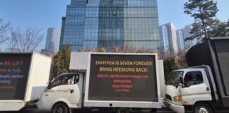 Heeseung’un uluslararası hayranları, HYBE binası önüne 20 kamyon gönderdi