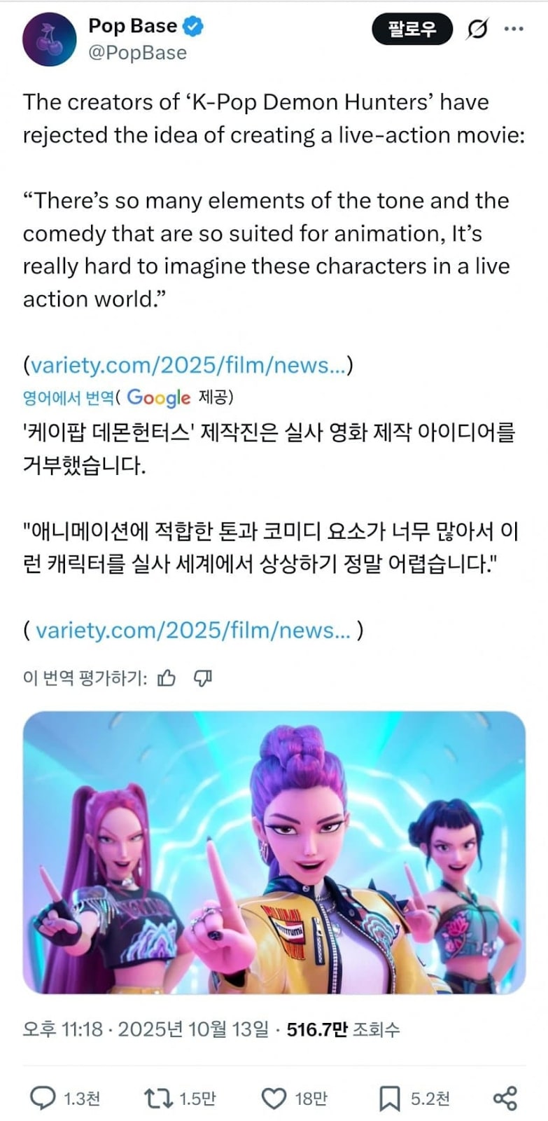 KPop Demon Hunters’ın yapımcıları, canlı aksiyon versiyonu teklifini geri çevirdi