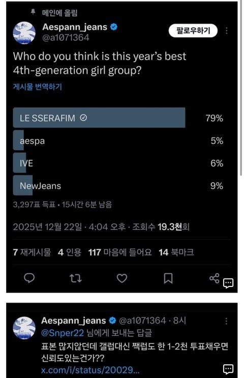Bu pislikler her gün NewJeans ve aespa’dan nefret ediyorlar ve sonunda LE LIT’i destekleyen ahjussiler Gallup’a çarptı ㅋㅋㅋㅋㅋㅋㅋㅋ LE LIT Gallup’tan atıldıㅋㅋㅋㅋㅋㅋㅋ