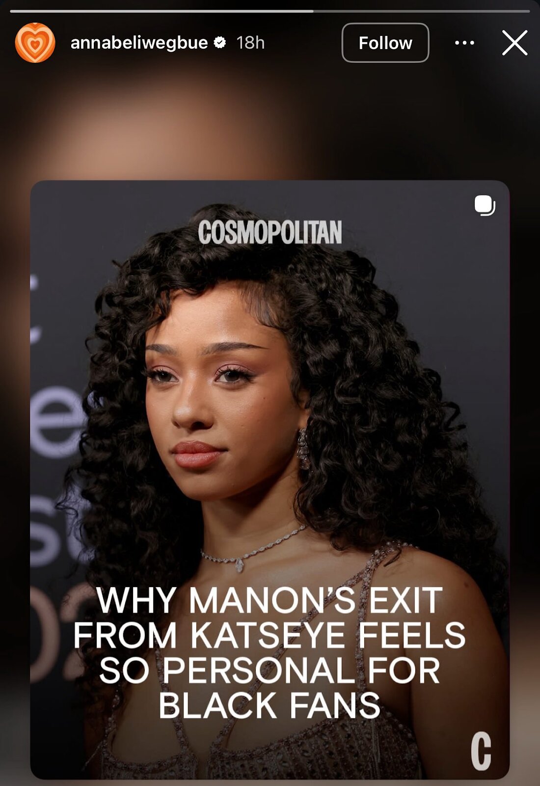 manon has followed annabel iwegbue the person who wrote the cosmopolitan article about her pic.twitter.com/nO3r48Ng9H