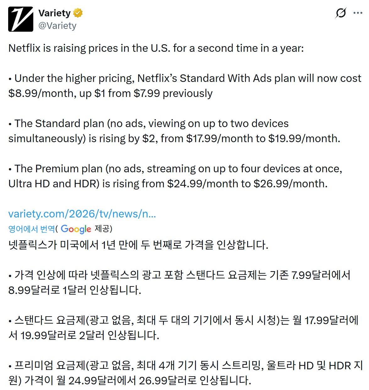 Reklamlı Standart $7.99 → $8.99