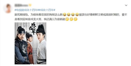 Ming hanedanı hakkındaki Çinli dizi ‘Sanctification 14 Years’ için Çinli bir netizen yaptığı yorumda “dizi niye bu kadar ‘Koreli’ gibi, karakterler Chosun hanedanından gibi giyinmiş, Goryeo hanedanı gibi ‘gat’ giyiyorlar, diziyi ilk önce Kore dizisi sandım” demiş