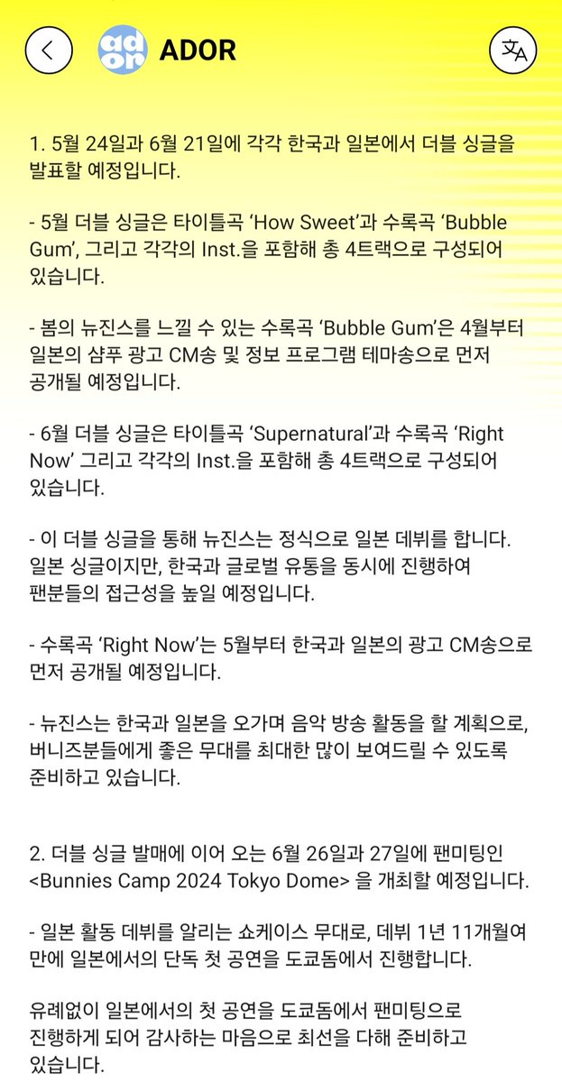-Bu gösteri New Jeans’in Japonya’daki ilk çıkışını duyuracak ve çıkışlarından sadece 1 yıl 11 ay sonra Tokyo Dome’da Japonya’daki ilk solo performansları olacak.