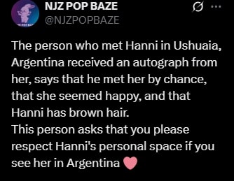 NEWJEANS HANNI’NİN BUGÜN PAYLAŞILAN İMZASI (GÜNEY AMERİKA’NIN BİR YERLERİNDE)