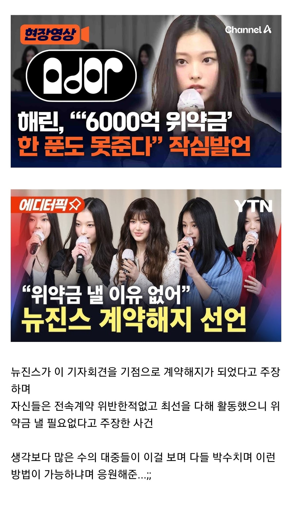 “Video 1: Haerin’in kararlı açıklaması: 6 trilyon wonluk ceza mı? Tek bir kuruş bile ödemeyi kabul etmiyorum.