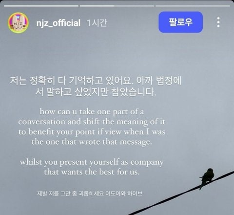 NJZ Hanni, duruşmadan sonra paylaştığı hikayede ‘ADOR ve HYBE bana eziyet etmeyi bırakın’ diyor