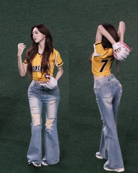 NMIXX Sullyoon’un beyzbol sahasındaki vücut oranları