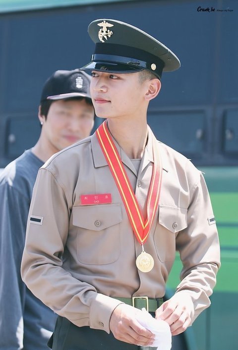 Üniformayla çok yakışıklı görünüyor, makyajı olmamasına ve fotoğraflar düzgün çekilmemesine rağmen. Film mi çekiyor ya…ㅠㅠ Terhis olacağı günü sabırsızlıkla bekliyorum