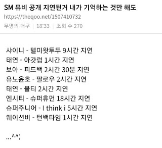 1. [+105, -3] ㅋㅋㅋㅋ SeChan’a para harcamadıklarını bu kadar bariz belli etmeleri beni çok sinirlendiriyor ㅋㅋㅋㅋ Kaç tane versiyon çıkacağını söylemek istemediler ve ilk ön siparişleri öylece kapattılar. Albüm hakkında bilgi vermeden ikinci ön siparişi de bitirdiler ㅋㅋㅋㅋㅋㅋ beklenmedik bir durum sebebiyle albümlerden sarılmış poster çıkmayacak dediler ama sonra aniden geri koydular ㅋㅋㅋㅋㅋ Sadece bir iki şey yok ortada, SM üyelerimizin üzerinden manyak paralar kazanıyor ama böyle davranırlarsa zarar girecekler, SM’in batmasını istiyorum ㅋㅋㅋㅋㅋㅋㅋㅋ nefret ediyorum bu şirketten