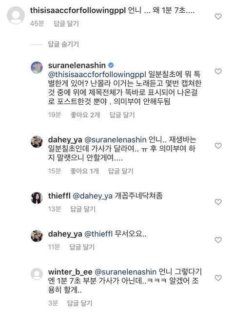 Suran şarkı sözlerini okudu muhtemelen ve o şarkı sözünü ayarlayıp tam uysun diye 1:07’ye geri aldı ㅋㅋㅋㅋㅋㅋㅋㅋㅋㅋㅋㅋ bu inkar edilemez ㅋㅋㅋㅋㅋㅋㅋ