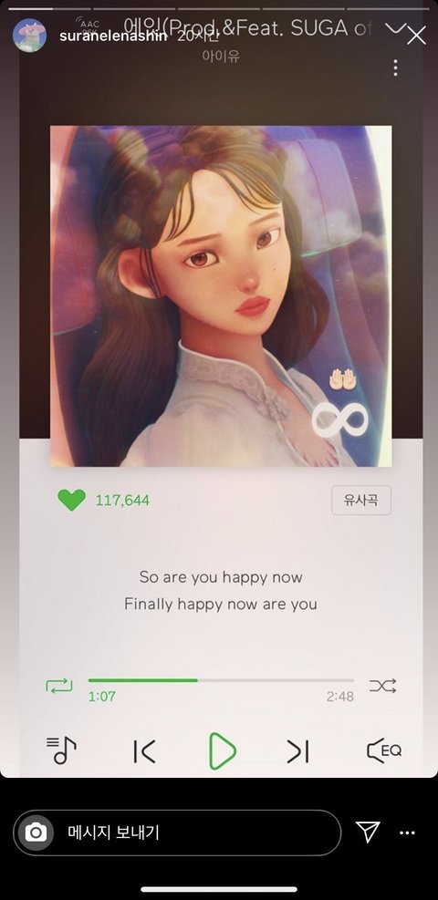 > Unni, şarkının 1:07 saniyesindeki şarkı sözleri senin paylaştığın ekran görüntüsündeki değil ama..ㅋㅋㅋ anlıyorum, sessiz kalacağım