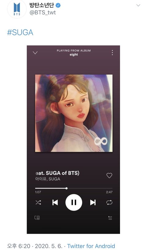 Suga 1:07 saniyesinde ekran görüntüsü almış