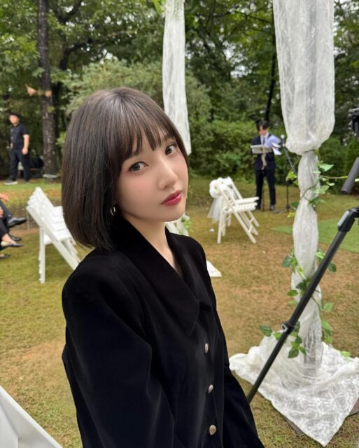 Bir dönem Joy’la birlikte MBC’nin I Live Alone programına katılan ortanca kız kardeş, zarif bir gelinlik giymiş; Joy ve en küçük kardeşi ise onun yanında oturuyor.