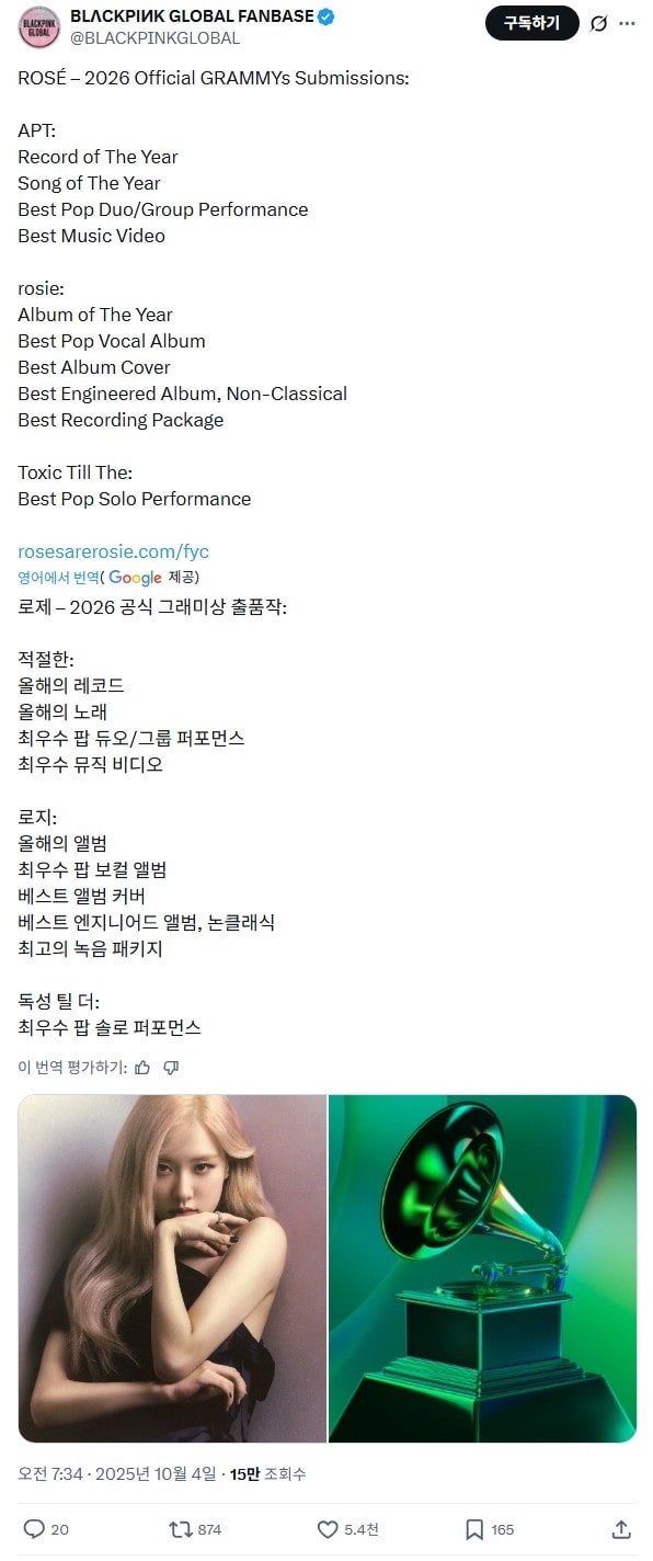 ROSÉ’NIN 2026 GRAMMY ÖDÜLLERI ADAYLIKLARI