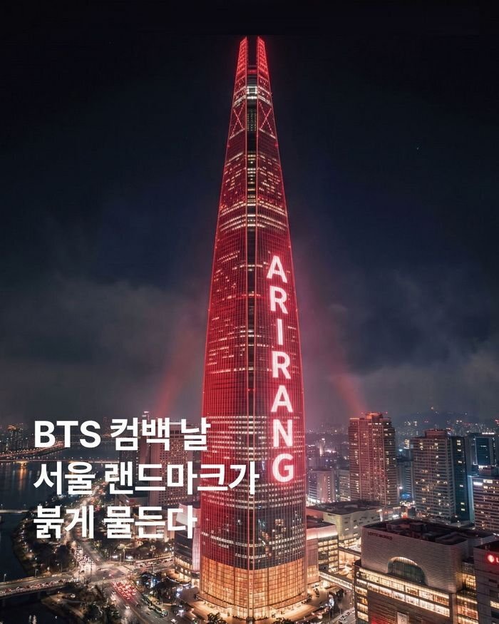 “Seul’ün simge yapıları BTS’in geri dönüş gününde kırmızıya büründü”