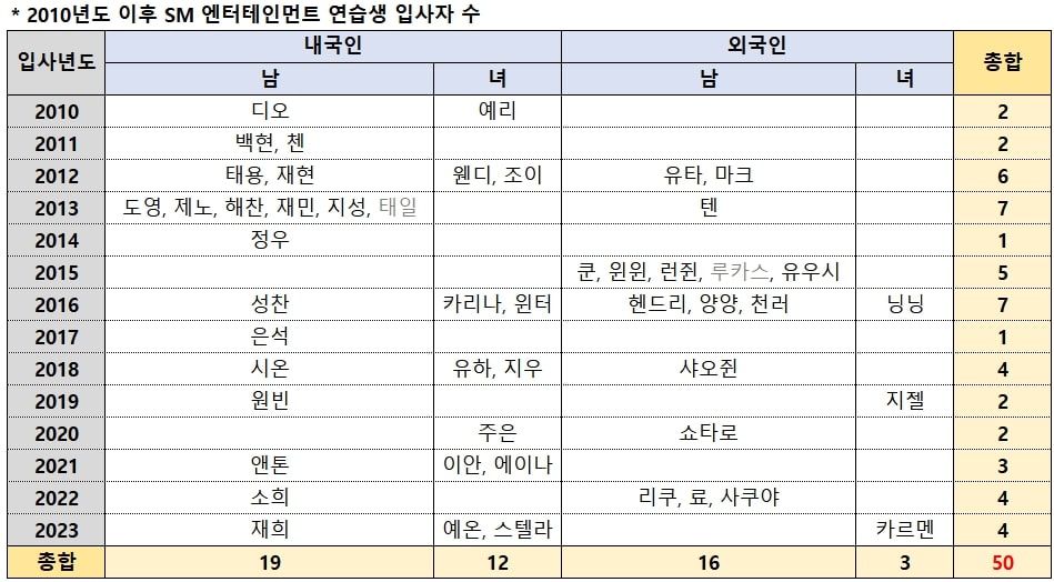 1. Mark 2013 yılında şirkete katıldı, ama Haechan’dan sonra girmişti, bu yüzden 2020 ya da 2021 olması lazım. O zaman 100 stajyer olduğunu görmüştüm ama mevcut stajyerler de dahil miydi yoksa sadece yeniler miydi emin değilim…