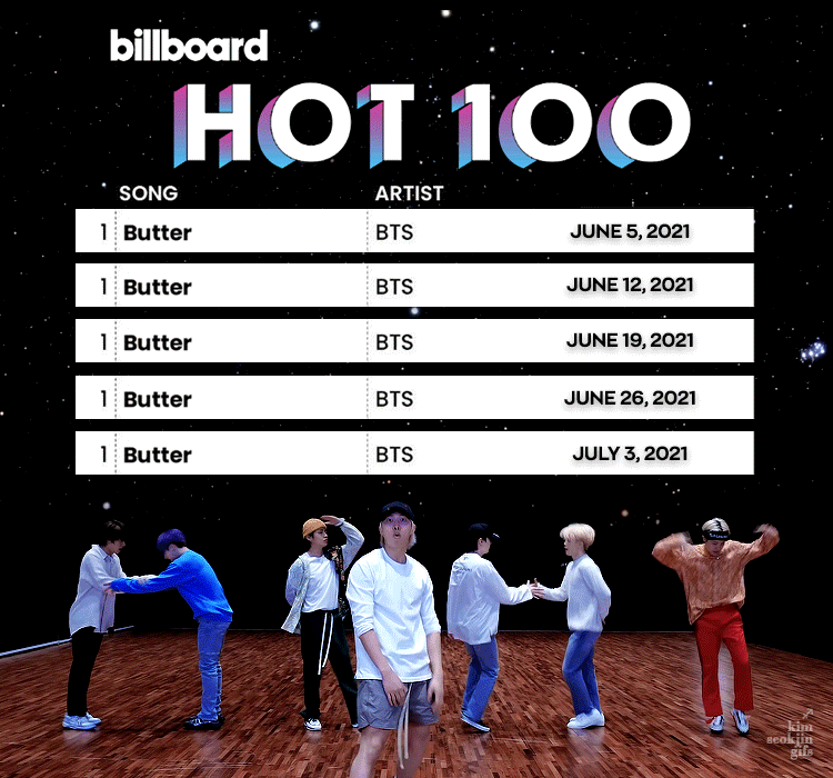 .@BTS_twt's "Butter" is officially No. 1 on this week's #Hot100 chart for a fifth consecutive week.